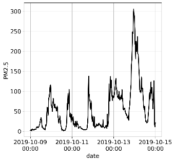 В то же время изменение периода сезонности для уровней концентрации PM2.5 вряд ли будет признаком нетипичного поведения, поскольку существуют длительные периоды экстремально высоких уровней PM2.5, связанные с неблагоприятными условиями в городе. В эти периоды ряд данных для PM2.5 будет аномальным, но не выбросом подпоследовательности.